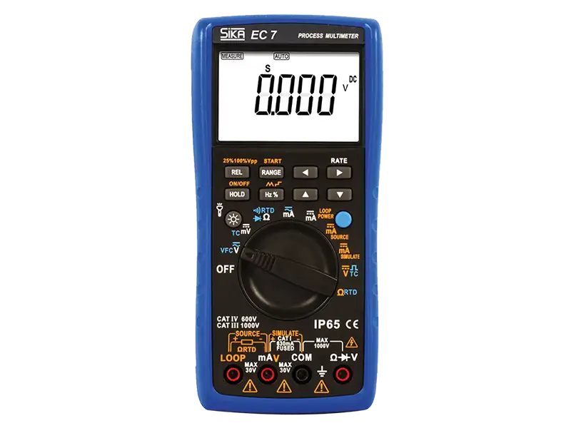 SIKA EC 7 är den perfekta lösningen om du letar efter en kompakt och robust enhet som kombinerar pålitlig multimeterfunktionalitet med professionell processignalkalibrering i tuffa miljöer. Simulerar och mäter spänning, ström, temperatur och resistans.